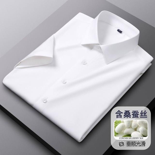 含桑蠶絲+莫代爾短袖白襯衫男士夏季商務職業裝伴郎半袖襯衣寸衫