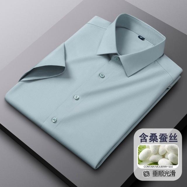 含桑蠶絲+莫代爾短袖白襯衫男士夏季商務職業裝伴郎半袖襯衣寸衫