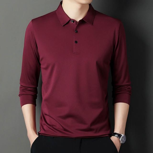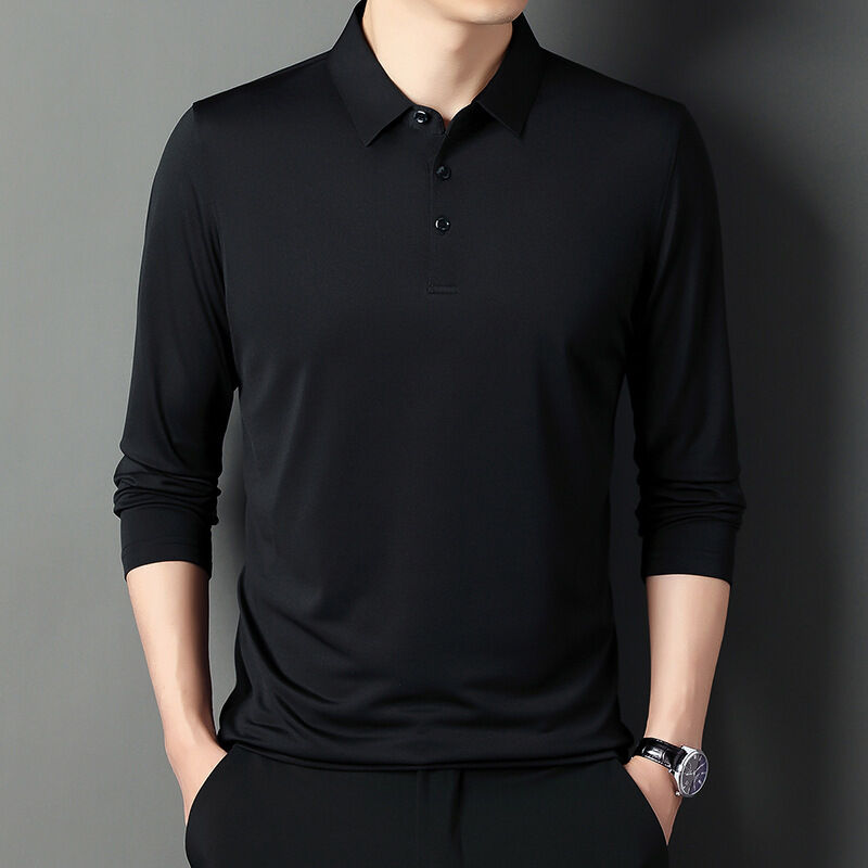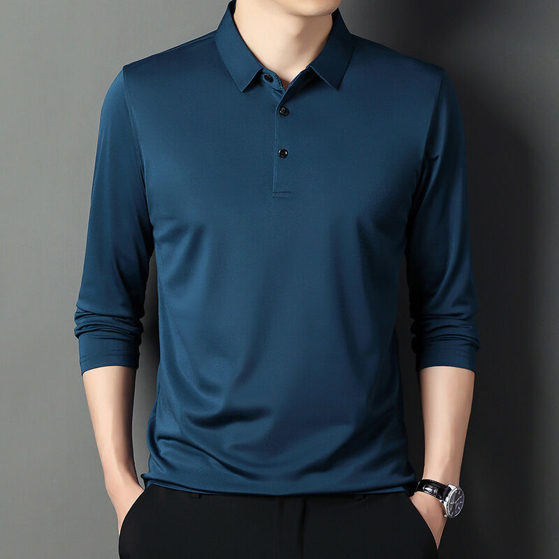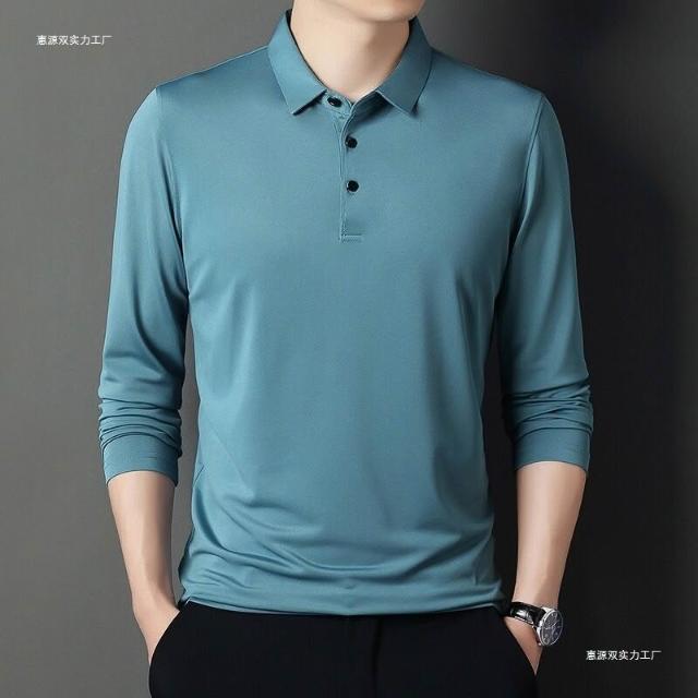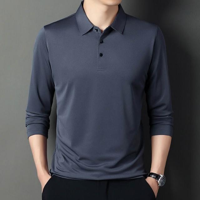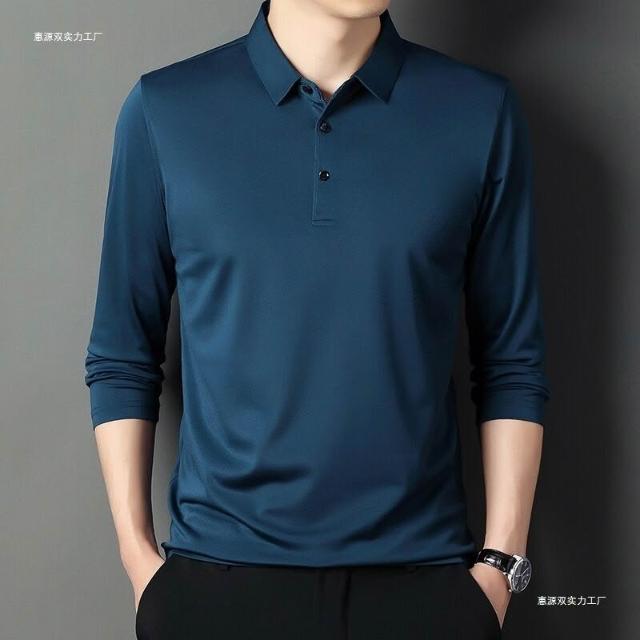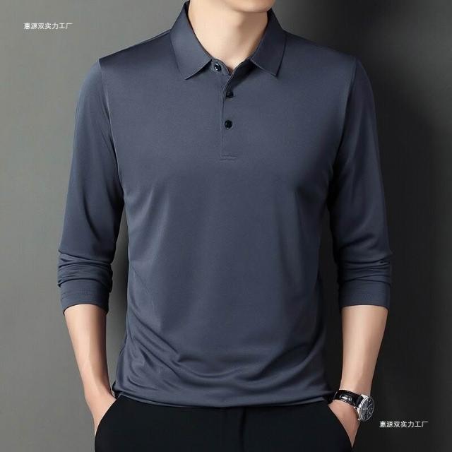 爸爸裝夏男夏季長袖t恤男棉薄款t恤冰絲襯衫男運動速幹彈力