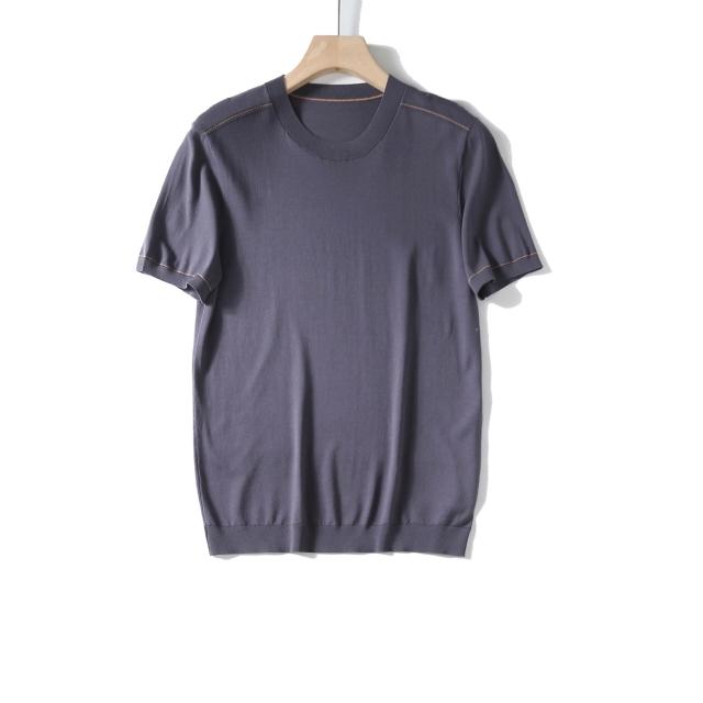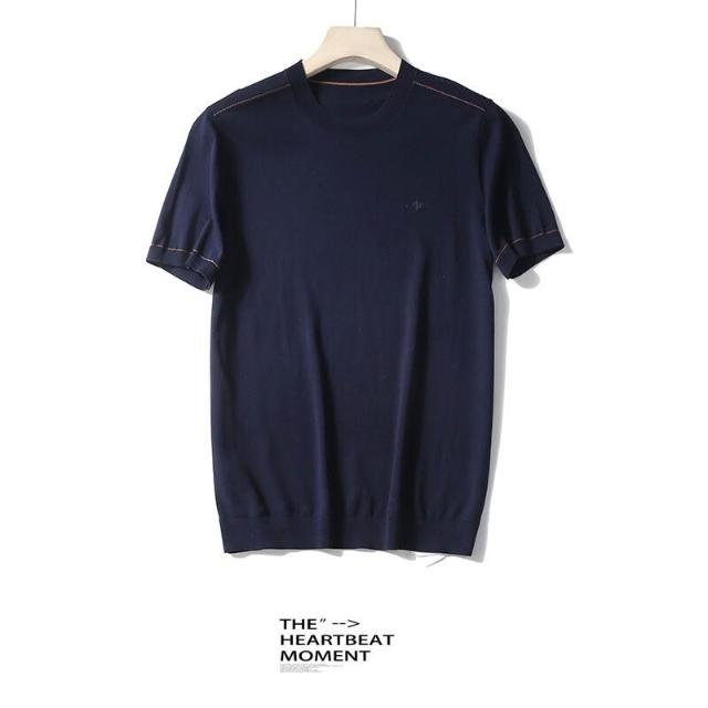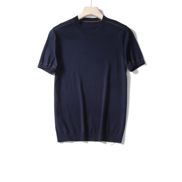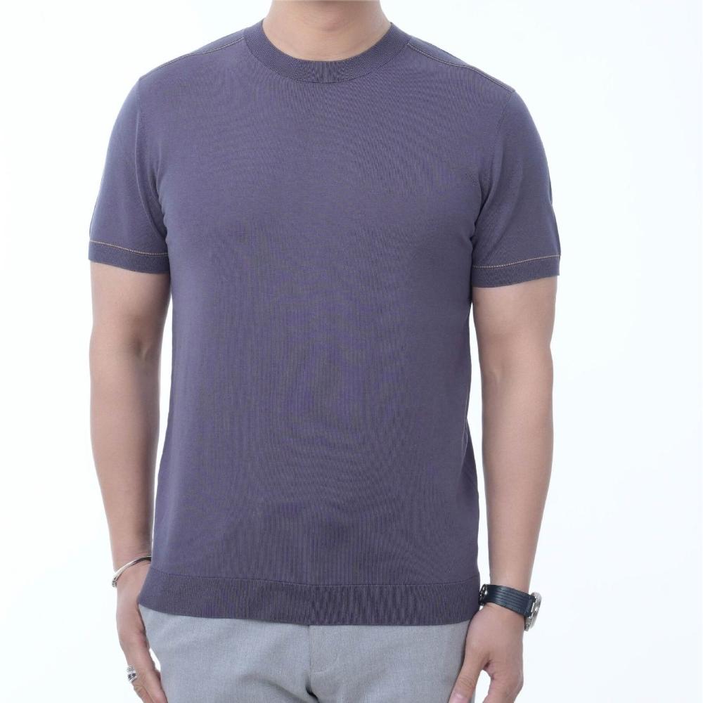 夏季新款天絲棉娟短袖套頭T恤男士純色上衣爸爸裝針織衫男TX263
