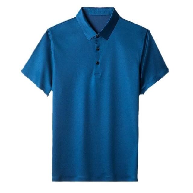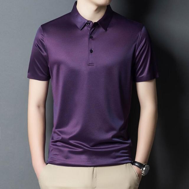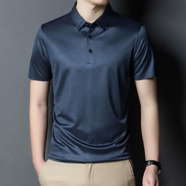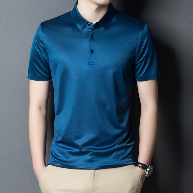 新款t恤男士桑蠶絲短袖夏季中青年純色翻領體恤休閑爸爸裝半袖衫