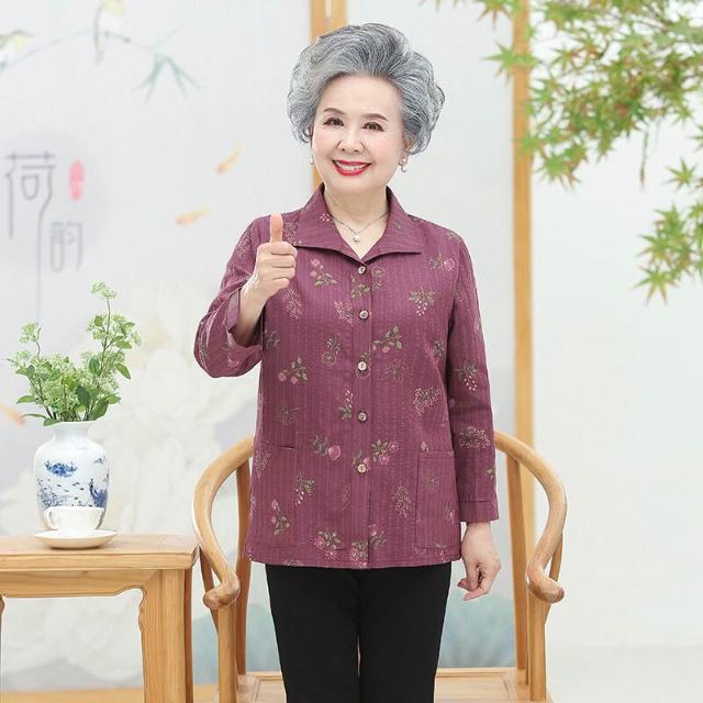 中老年女裝春夏季純棉襯衫60-70歲80媽媽老人衣服奶奶裝薄款外套