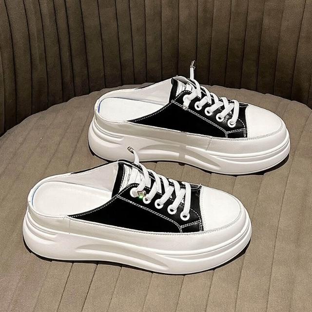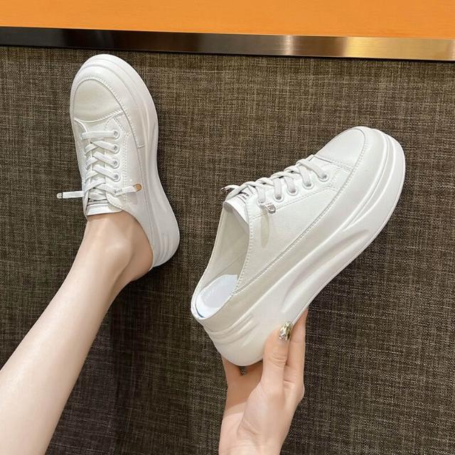 包頭半拖小白鞋女2025夏季新款真皮厚底學生增高韓版拼色休閑鞋子