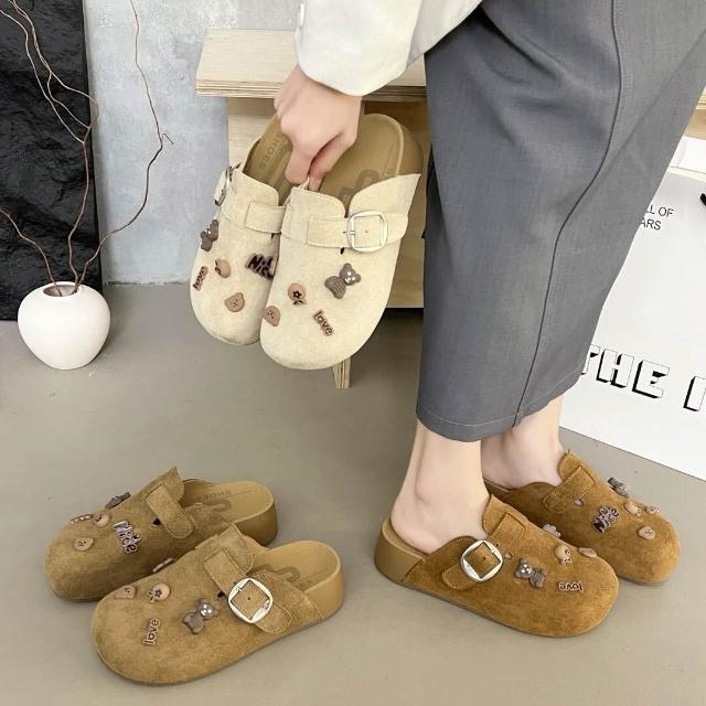 勃肯半拖鞋女一腳蹬2026新款厚底包頭拖鞋外穿勃肯鞋女鞋平底防滑