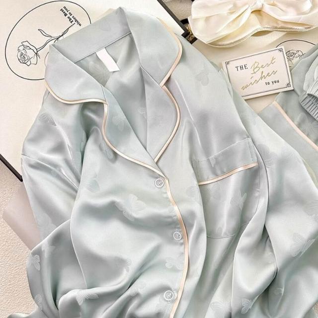 睡衣女夏季冰絲提花睡衣簡約寬松休閑舒適女士家居服套裝高級感