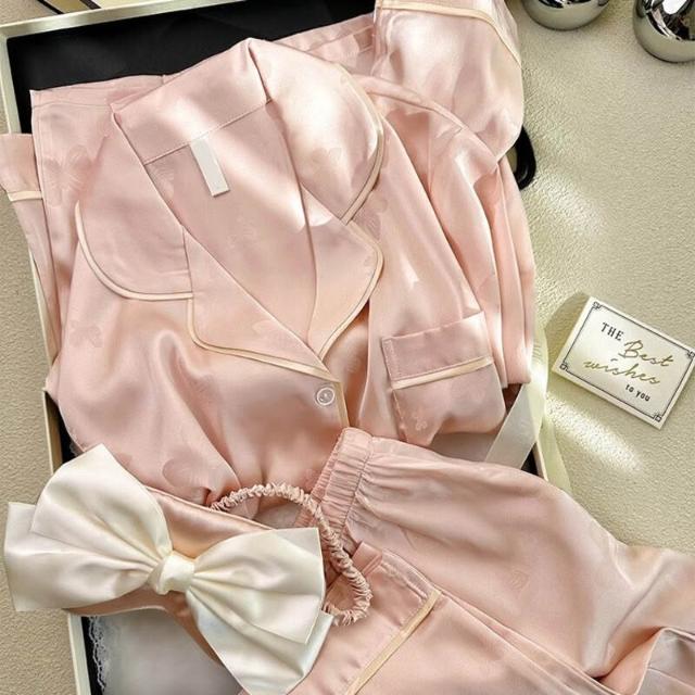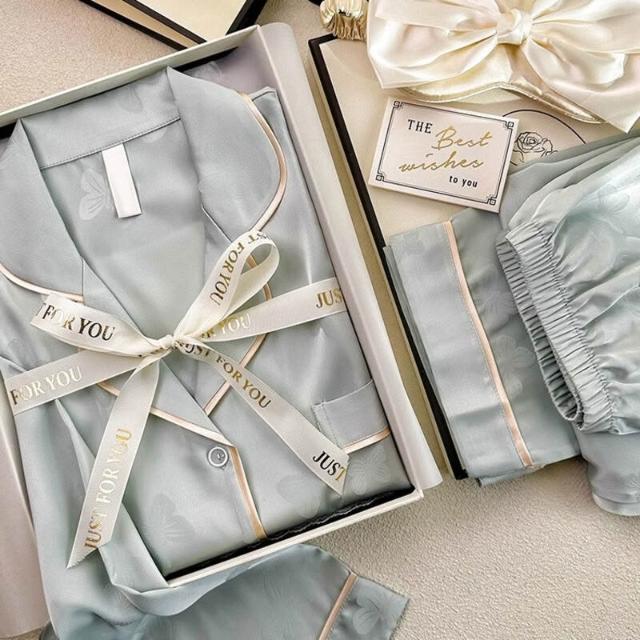 睡衣女夏季冰絲提花睡衣簡約寬松休閑舒適女士家居服套裝高級感