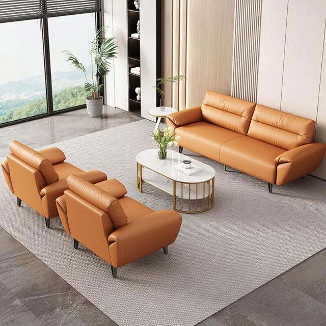 接待辦公室沙發茶幾組合商務簡約三人座休息區會客室皮藝辦公沙發