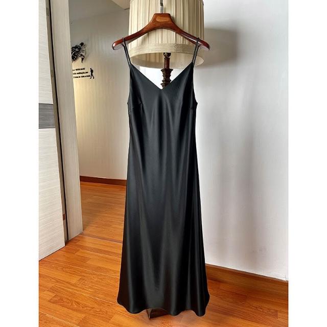 V領緞面醋酸真絲吊帶裙中長款 高級感內搭打底連衣裙夏薄款垂感