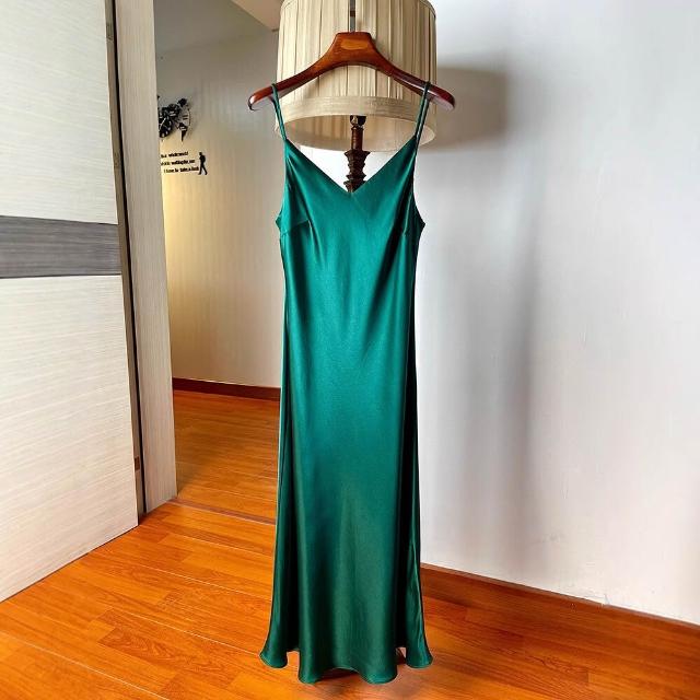V領緞面醋酸真絲吊帶裙中長款 高級感內搭打底連衣裙夏薄款垂感