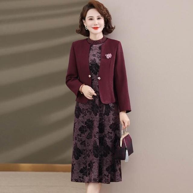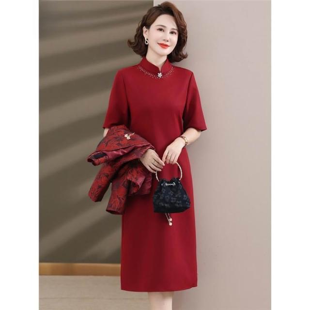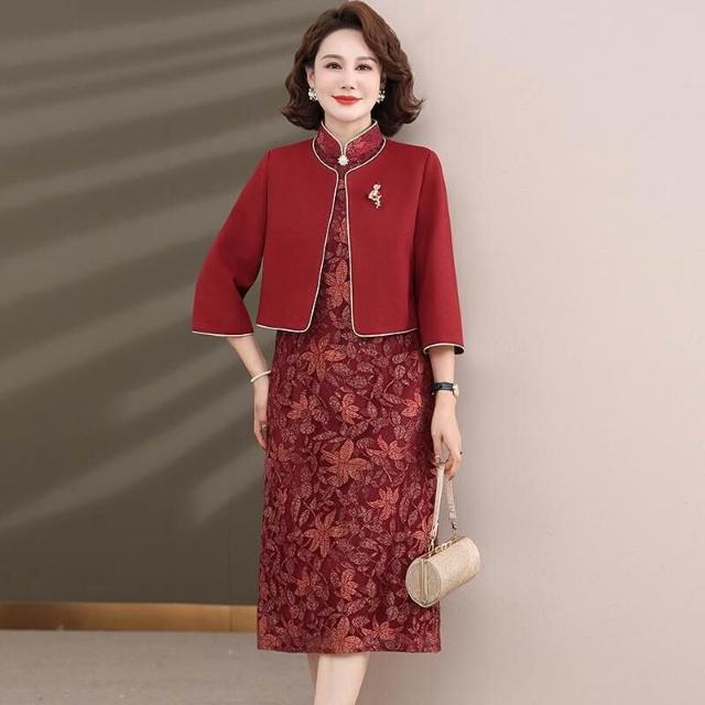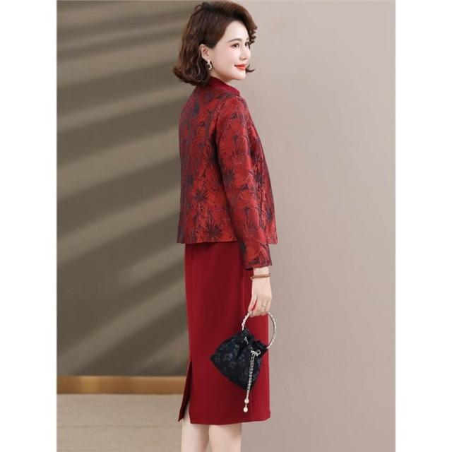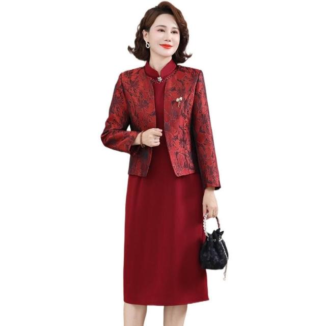 十一禮服媽媽秋裝連衣裙兩件套裝中老年女裝春秋季喜婆婆高貴裙子