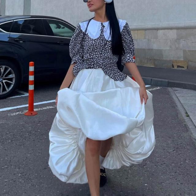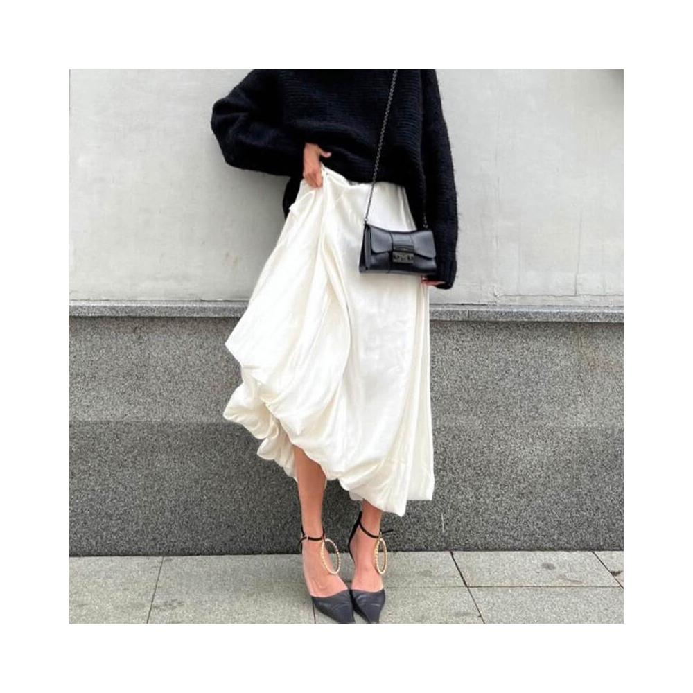 歐美風2026春季新款氣球裙時尚休閑簡約純色百搭高腰蓬蓬裙半身裙