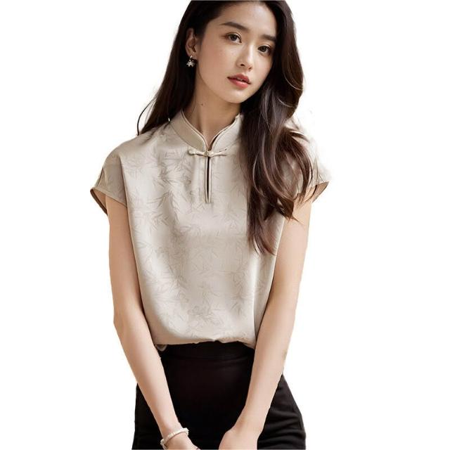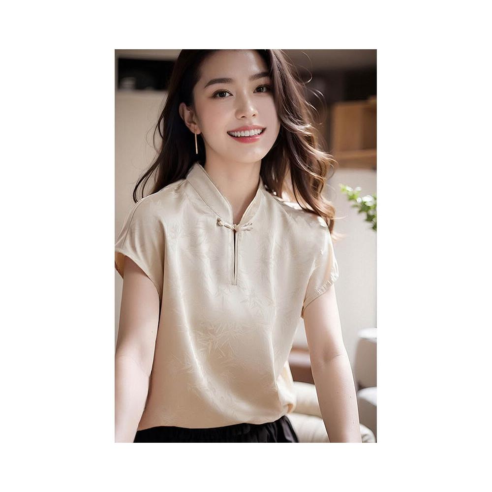新中式提花盤扣立領短袖襯衫女夏季新款2025改良緞面典雅氣質上衣