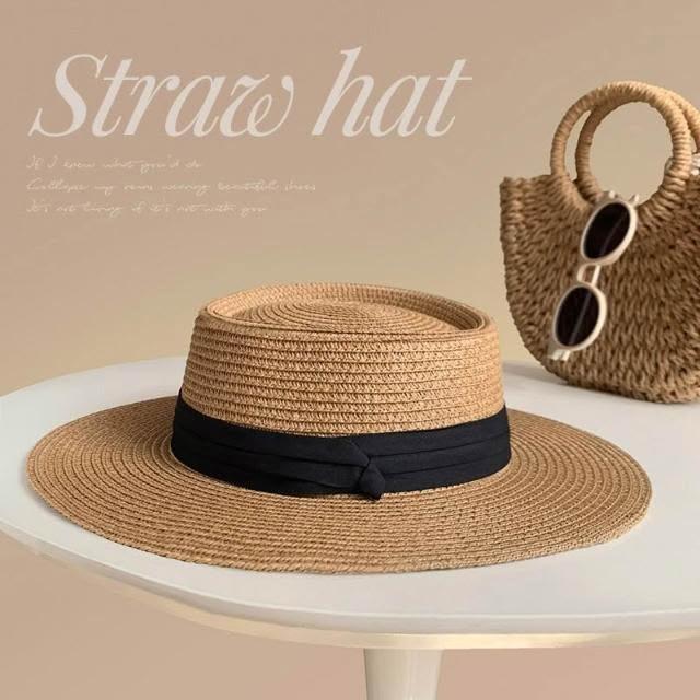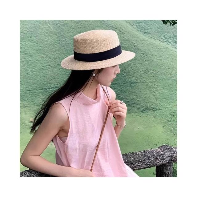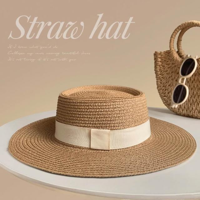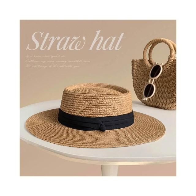 必備 2025新款大頭圍法式平頂草帽女夏季海邊禮帽大碼加大防曬太陽帽子