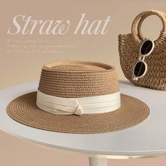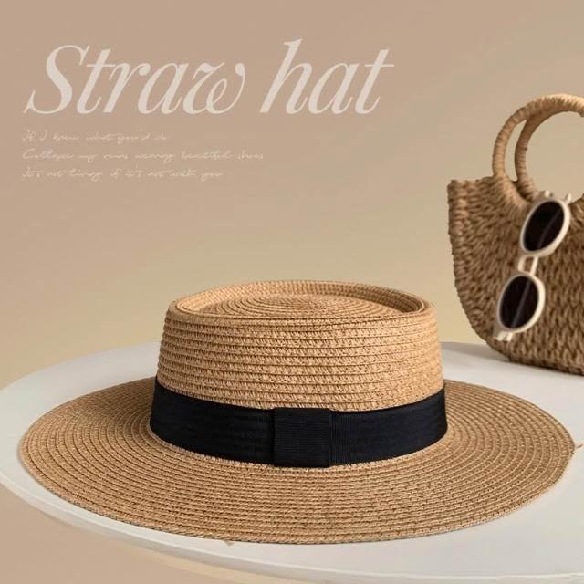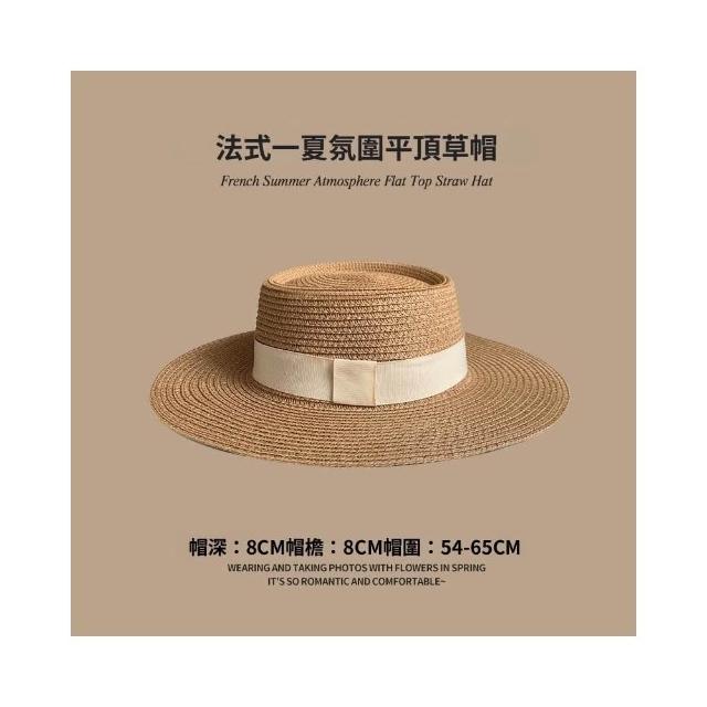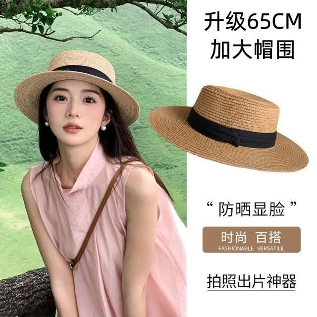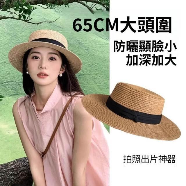 必備 2025新款大頭圍法式平頂草帽女夏季海邊禮帽大碼加大防曬太陽帽子