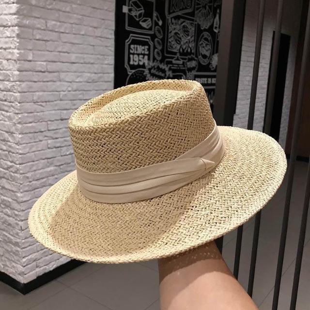 必備 法式草編禮帽女遮陽防曬春夏季海邊三亞度假英倫復古平頂草帽時尚