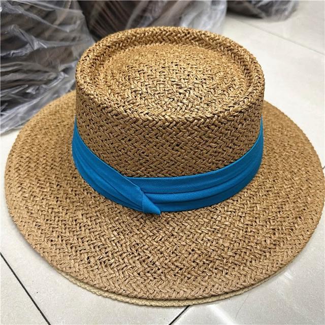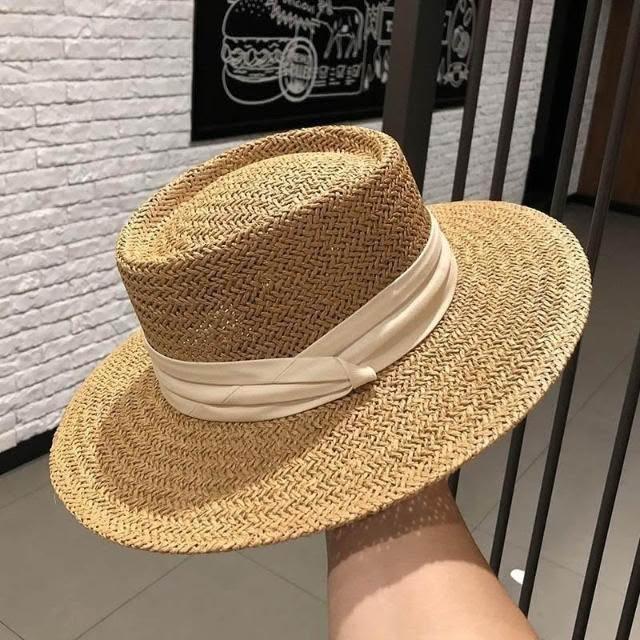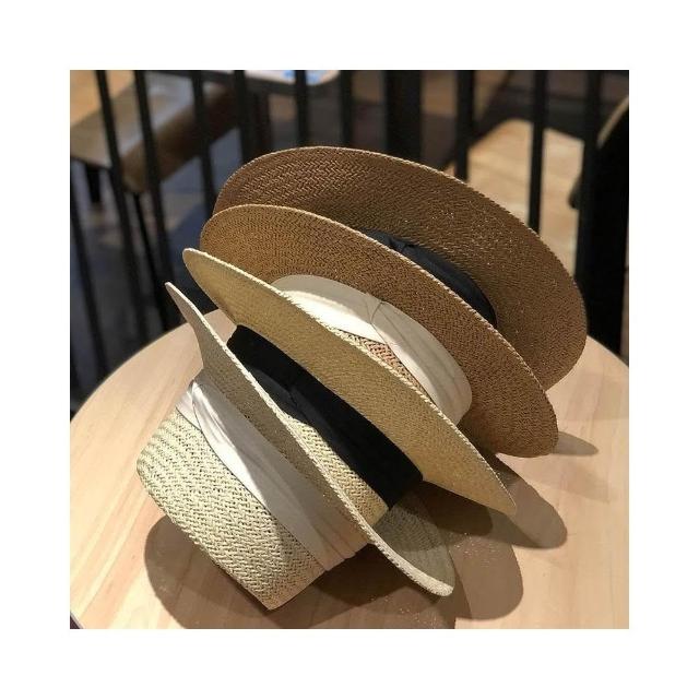 必備 法式草編禮帽女遮陽防曬春夏季海邊三亞度假英倫復古平頂草帽時尚