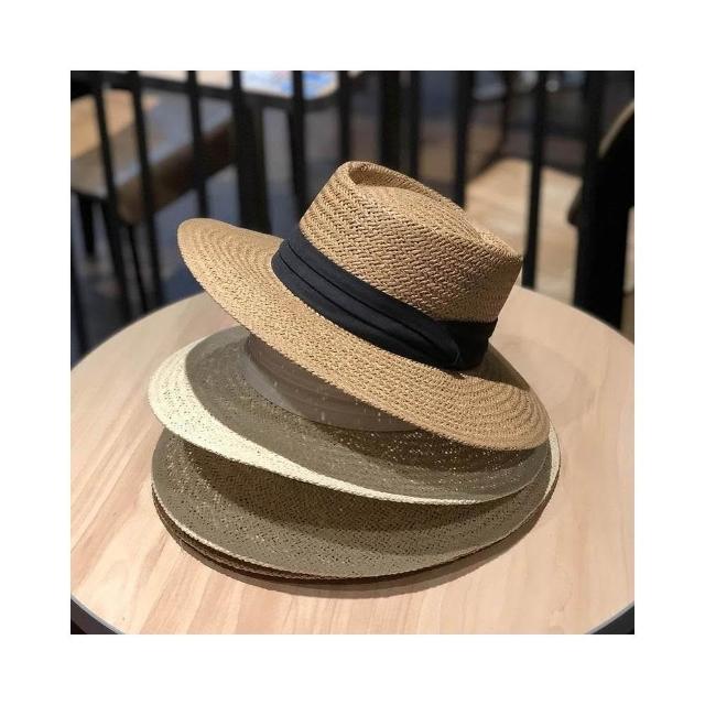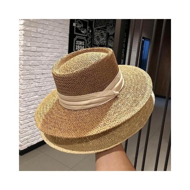 必備 法式草編禮帽女遮陽防曬春夏季海邊三亞度假英倫復古平頂草帽時尚