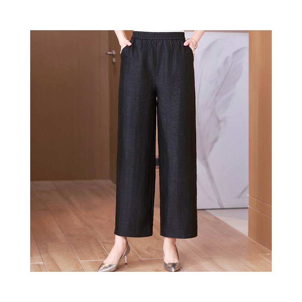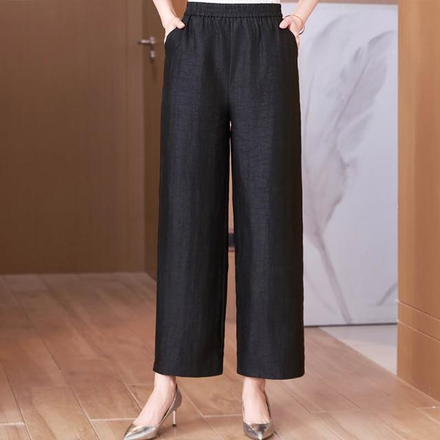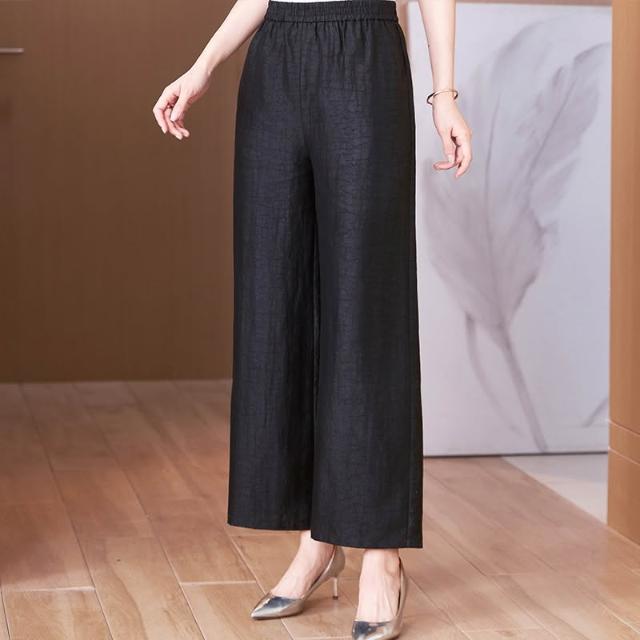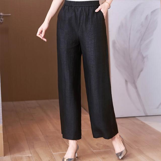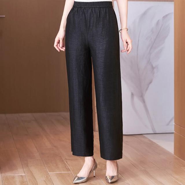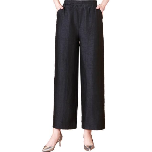 高端香雲紗夏季氣質中年女顯瘦大碼桑蠶絲直筒褲寬松休閑闊腿褲子
