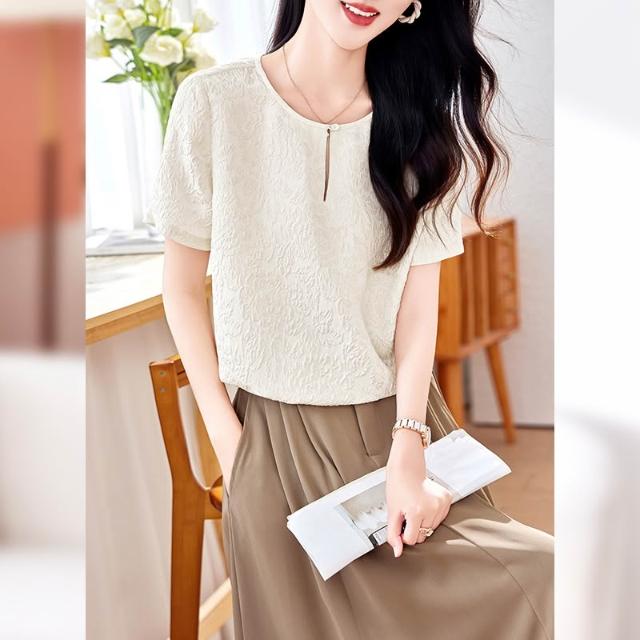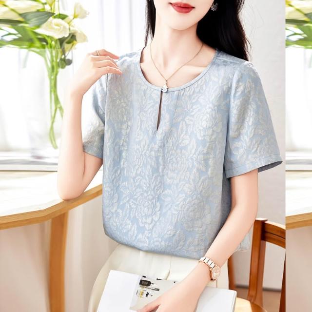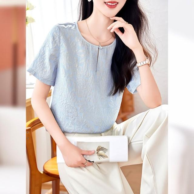 高端金絲冠樂绉真絲上衣女短袖2026新款夏重磅桑蠶絲襯衣顯瘦小衫