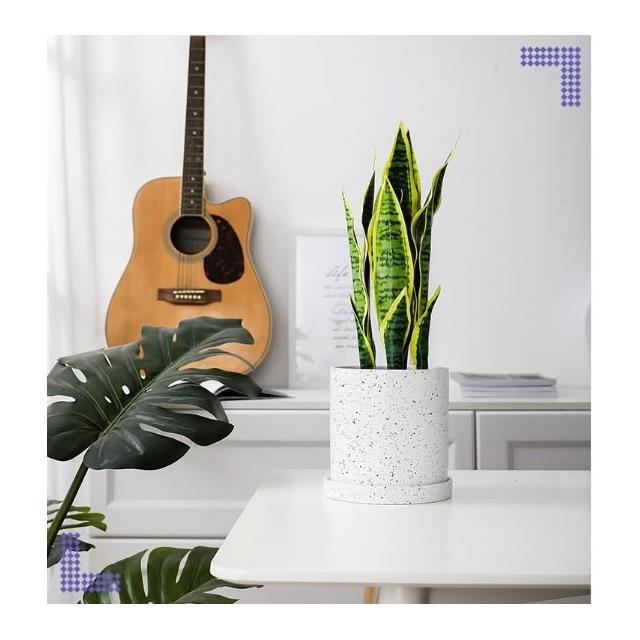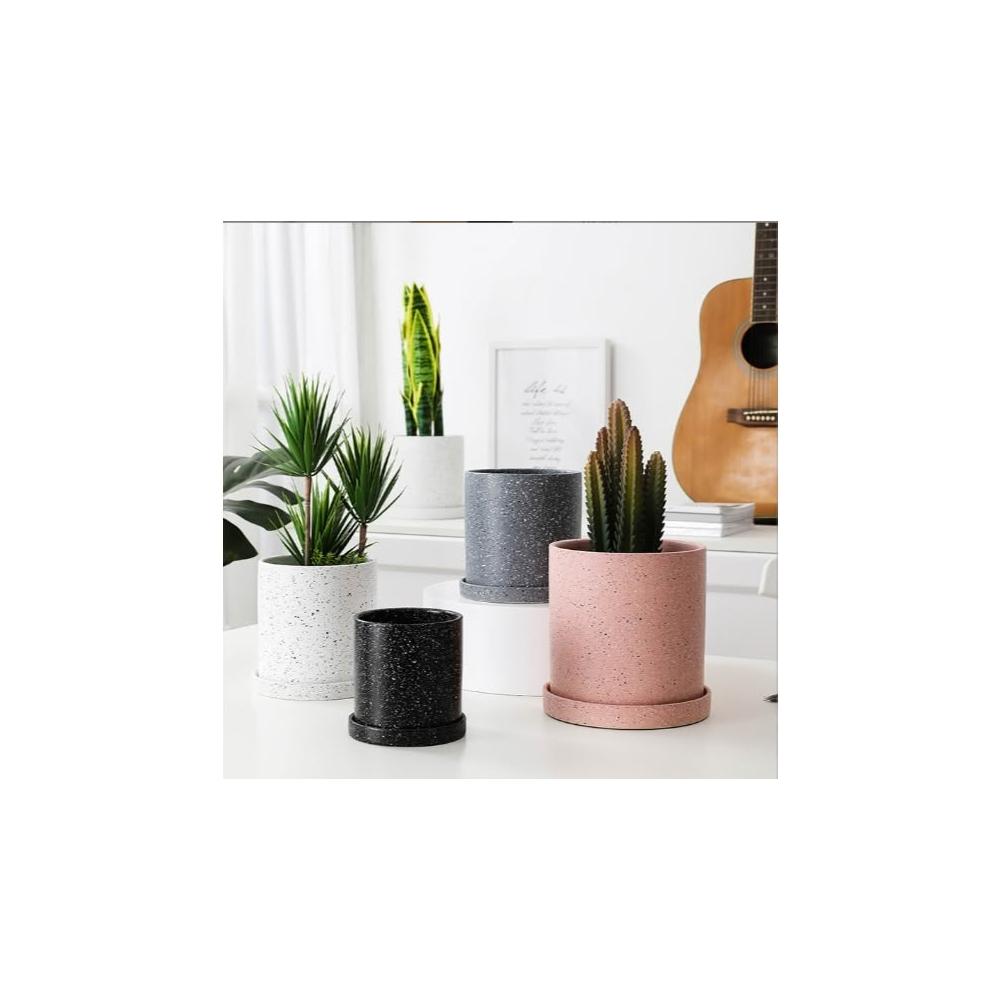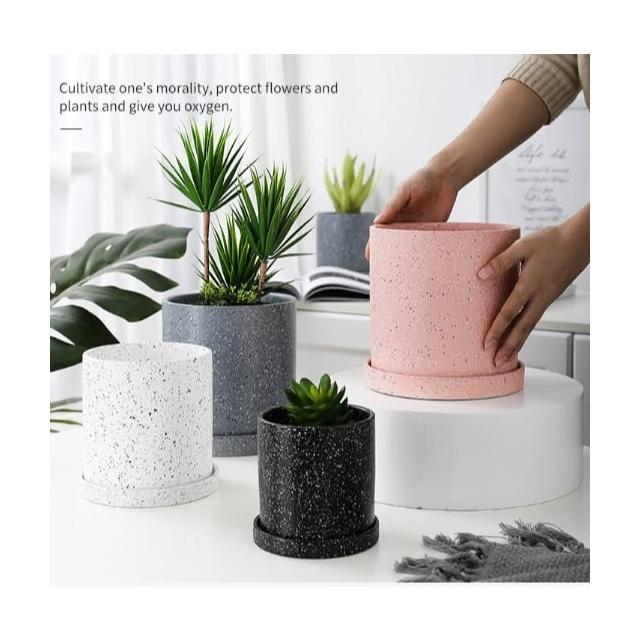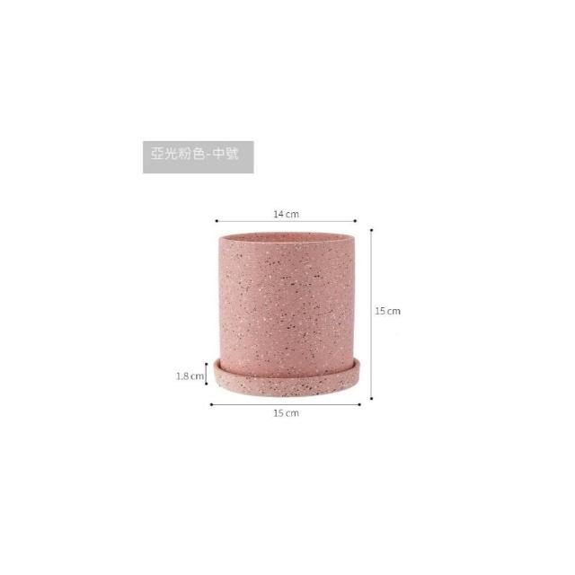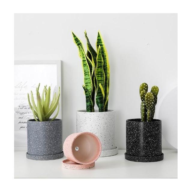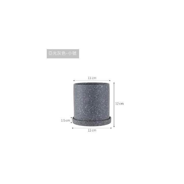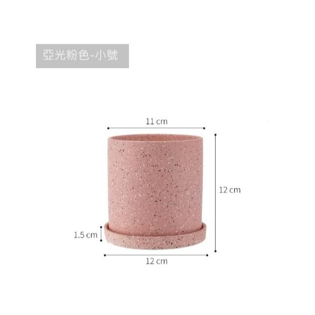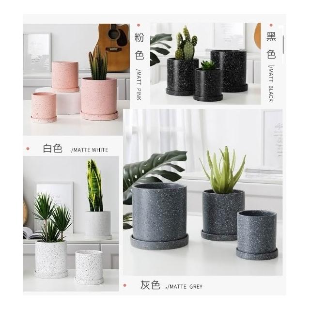 巨路生活陶瓷花盆 簡約桌上花盆 底部有孔含托盤 家用創意圓形辦公室桌面托盤小花盆