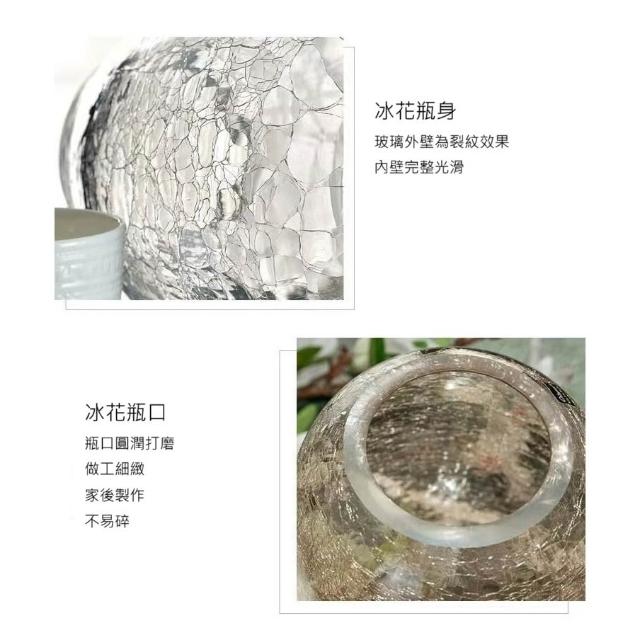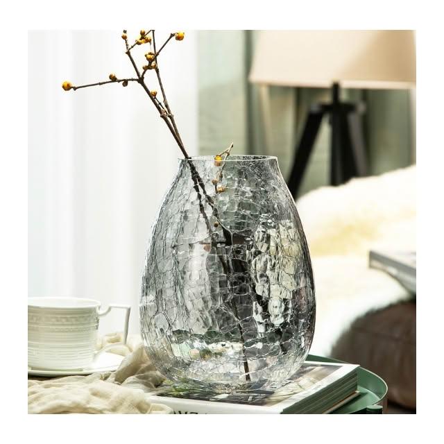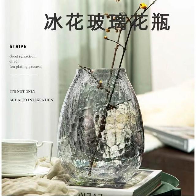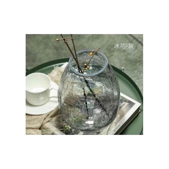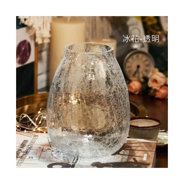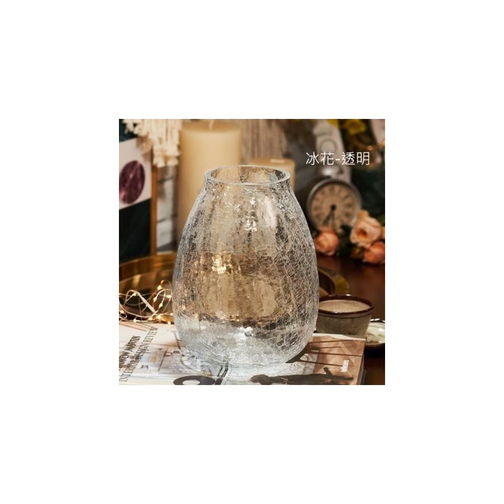 巨路生活玻璃花瓶 輕奢裂紋冰花玻璃花瓶 琉光透明花器 家居裝飾插花瓶