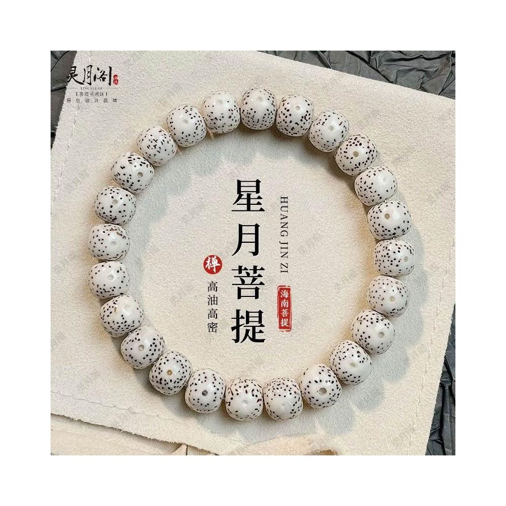 聰明甄選海南星月菩提手串男款單圈高密順白五指山正月留白佛珠文玩手鍊女