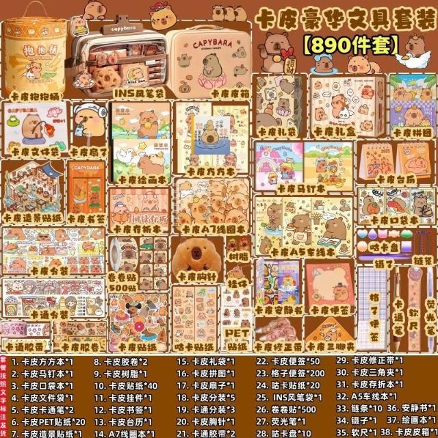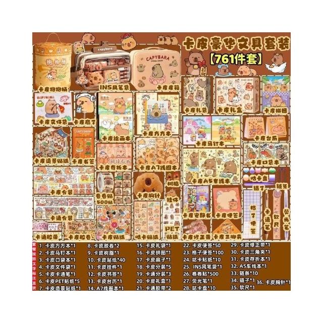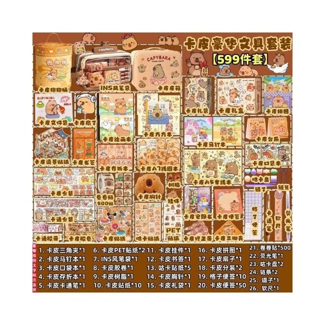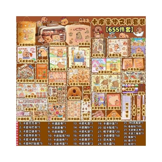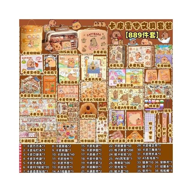 聰明甄選卡皮巴拉文具套裝全套大禮包痛包紮包材料包學生開學學習用品禮物