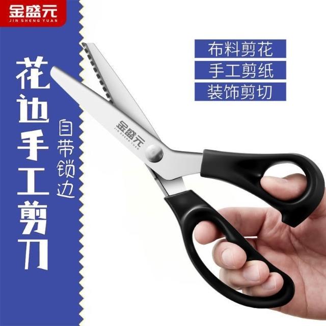 聰明甄選金盛元黑色花邊裁縫剪家用剪紙剪花邊剪布料多用不鏽鋼大波浪商用