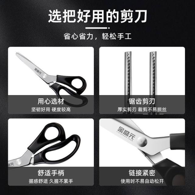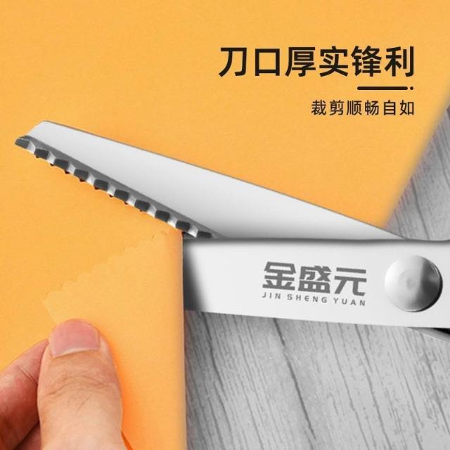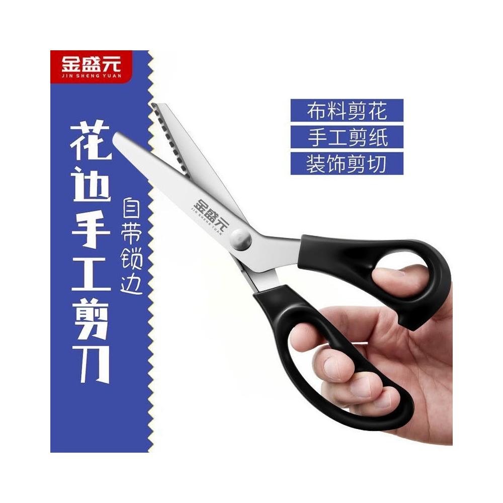 聰明甄選金盛元黑色花邊裁縫剪家用剪紙剪花邊剪布料多用不鏽鋼大波浪商用