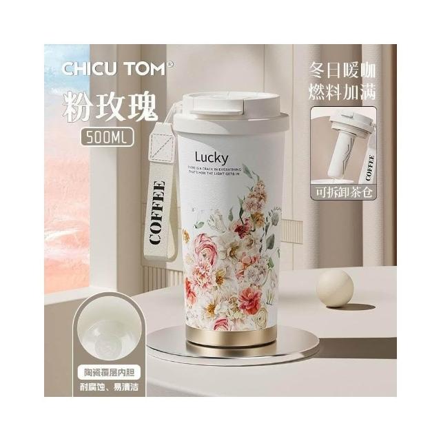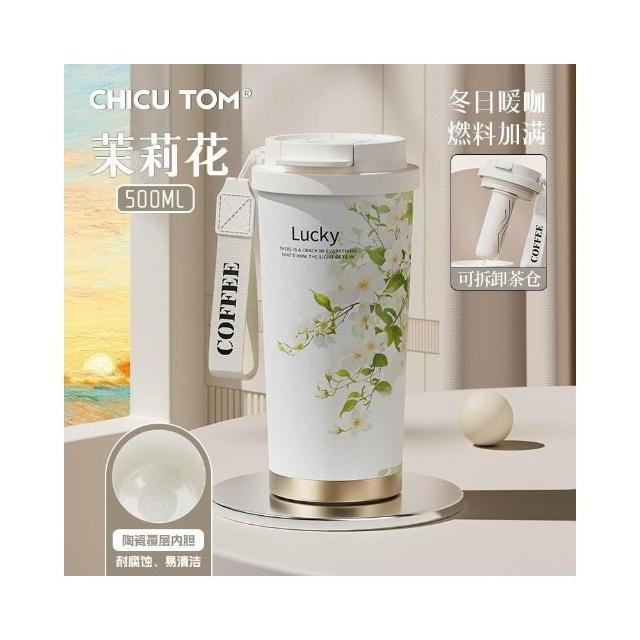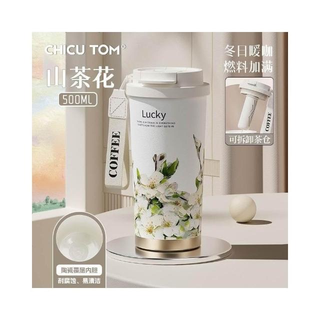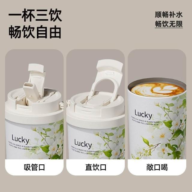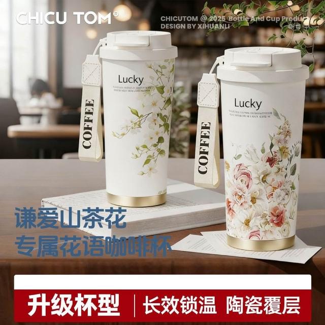聰明甄選奇古堂保溫杯陶瓷覆層內膽辦公高顏值外出便攜咖啡杯雙飲吸管杯子