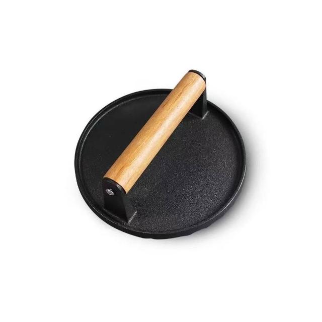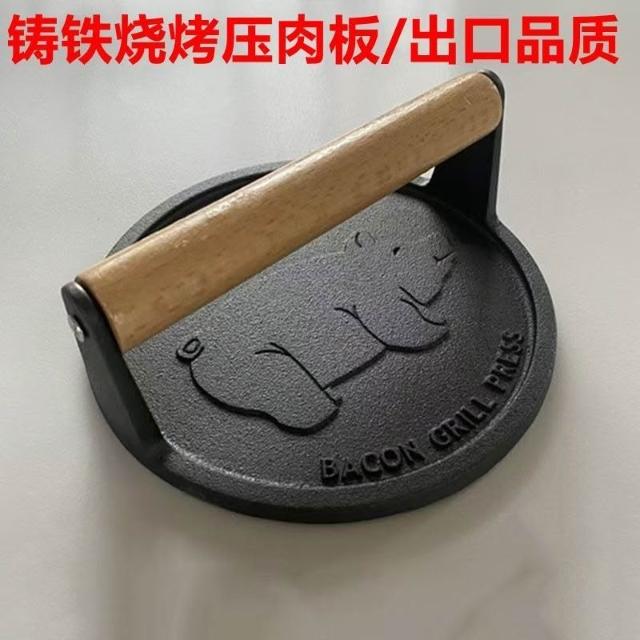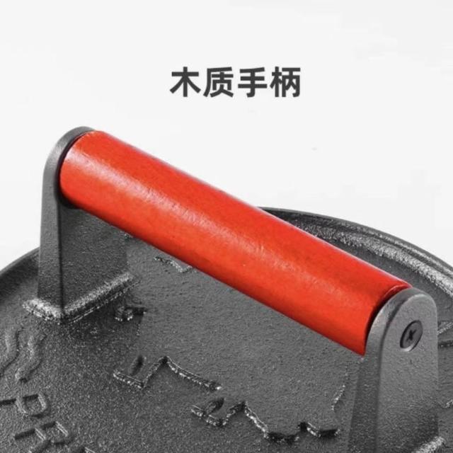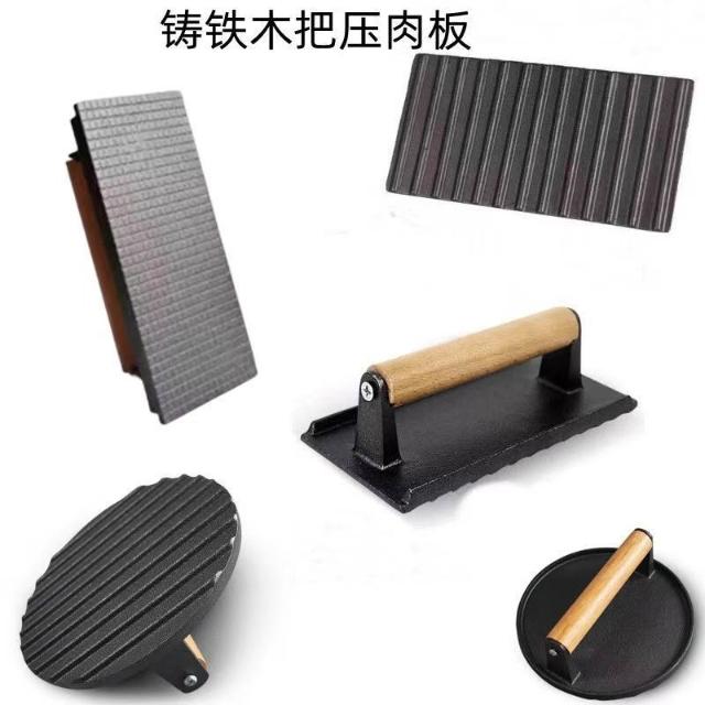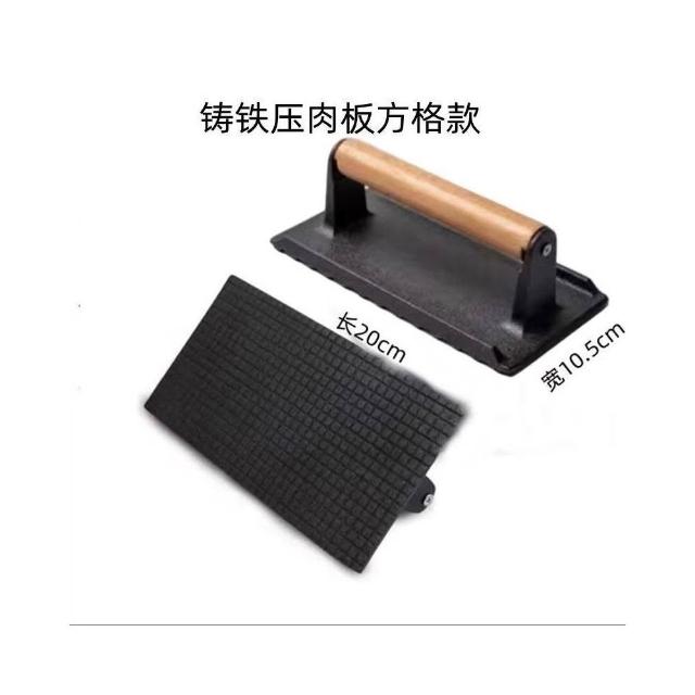 聰明甄選鑄鐵壓肉板長方形無塗層方格/條紋/圓形鑄鐵板燒烤板牛排壓板櫸