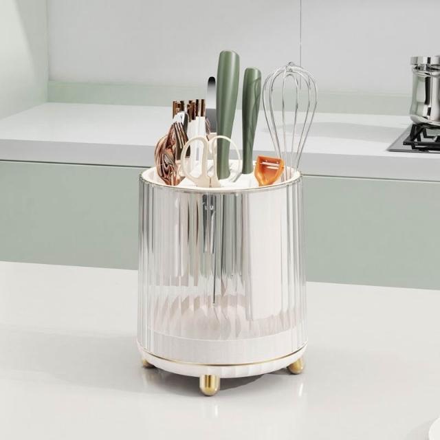 聰明甄選可旋轉廚房圓筒刀架砧板一體置物架檯面刀座筷子籠刀具收納架子