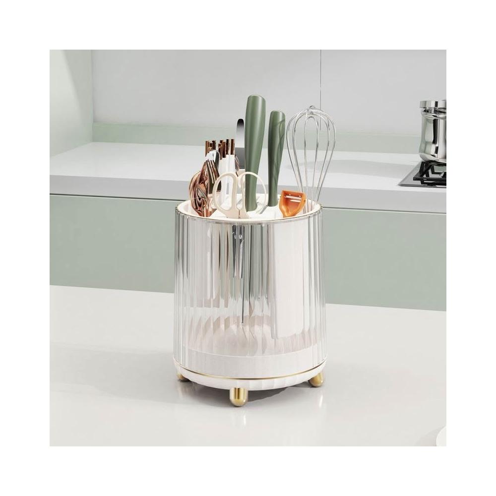 聰明甄選可旋轉廚房圓筒刀架砧板一體置物架檯面刀座筷子籠刀具收納架子