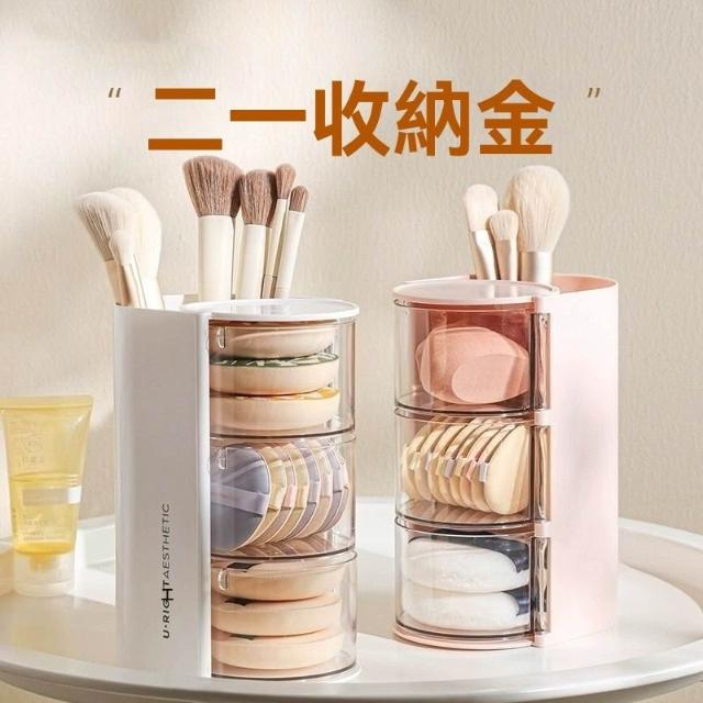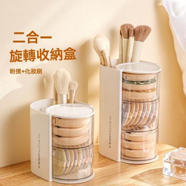 樂樂甄選粉撲化妝品桌面收納盒旋轉防塵梳妝檯美妝蛋大學生收納盒學生宿舍