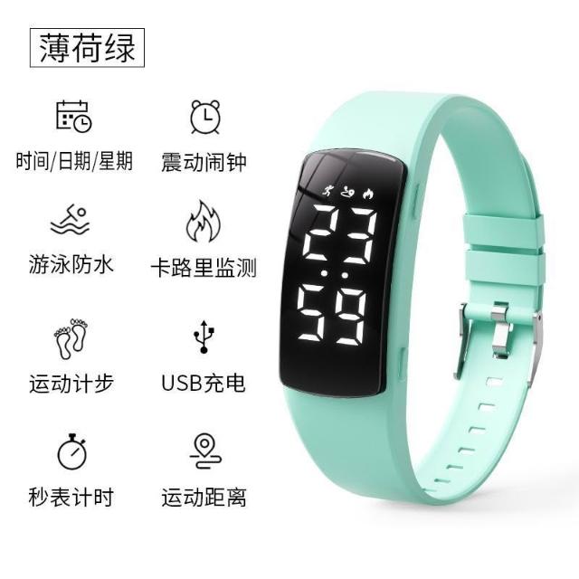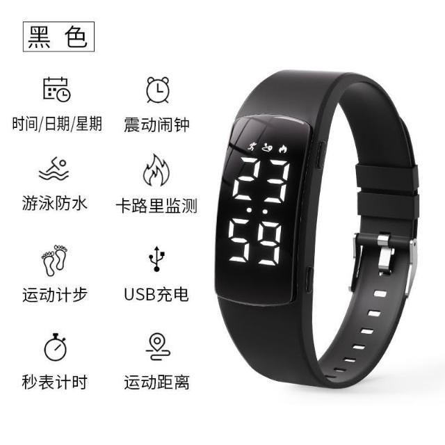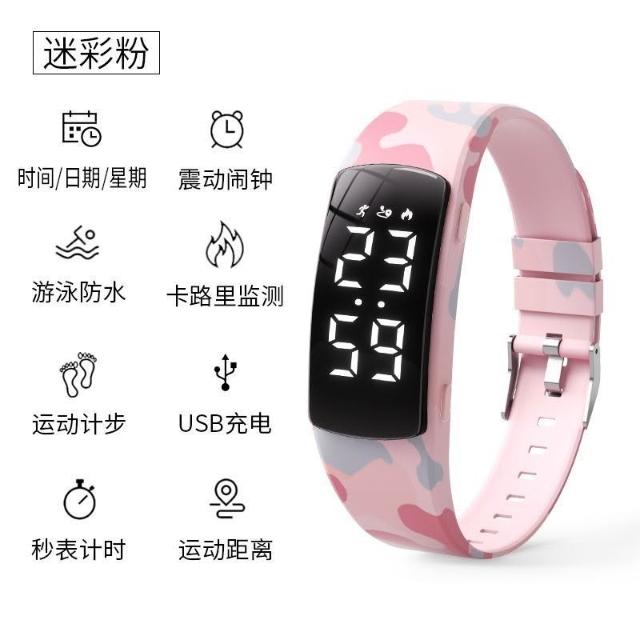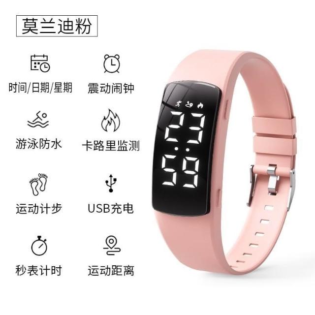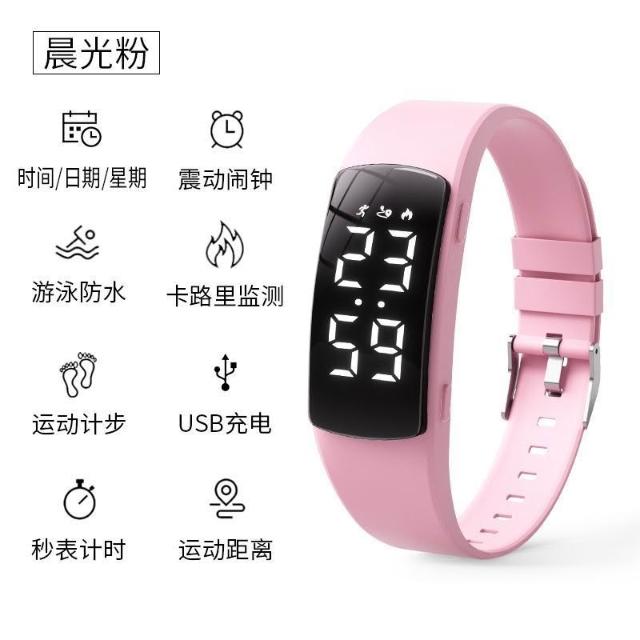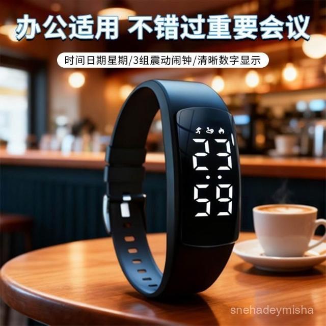 小滿優選簡約震動鬧鍾電子手環計步計時遊泳防水學生夜光看時男女衕款手錶