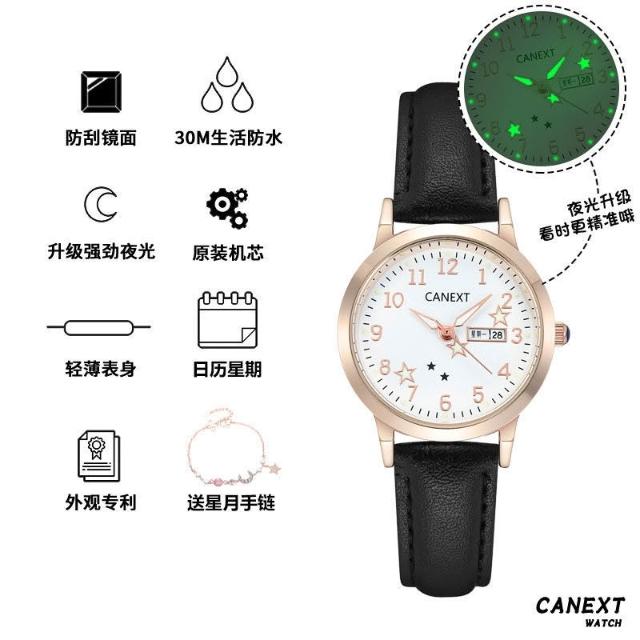 小滿優選手錶女簡約氣質少女學生初高中生高顔值女孩防水夜光指針式電子錶