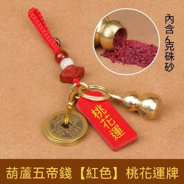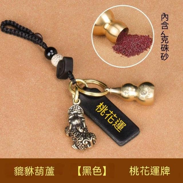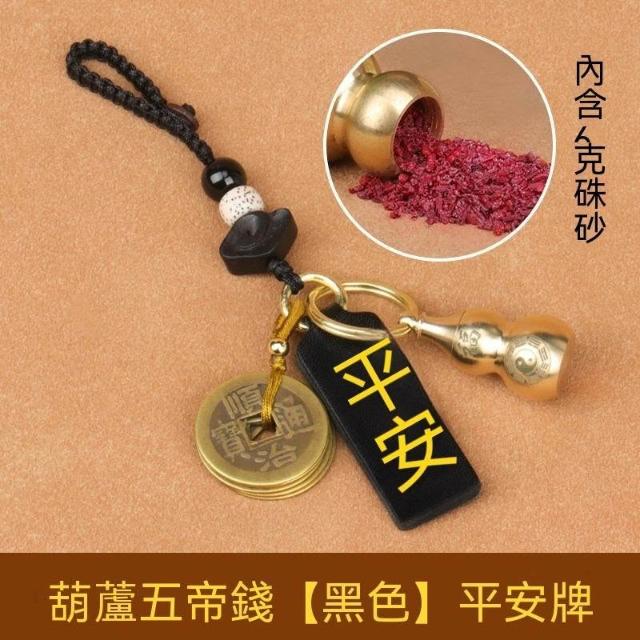 滿溢優選硃砂真皮平安牌鑰匙扣汽車掛件黃銅葫蘆貔貅五帝錢編織繩掛鏈飾品