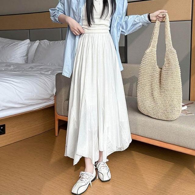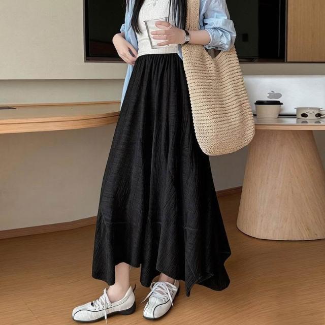 滿溢優選2026新款溫柔風不規則褶皺半身裙夏洋氣時尚減齡顯瘦垂感大擺傘裙