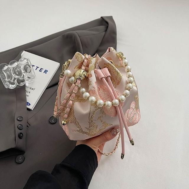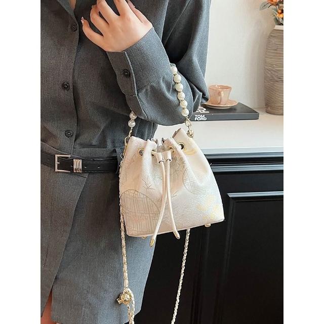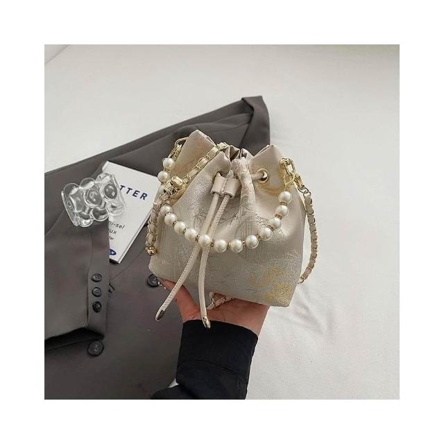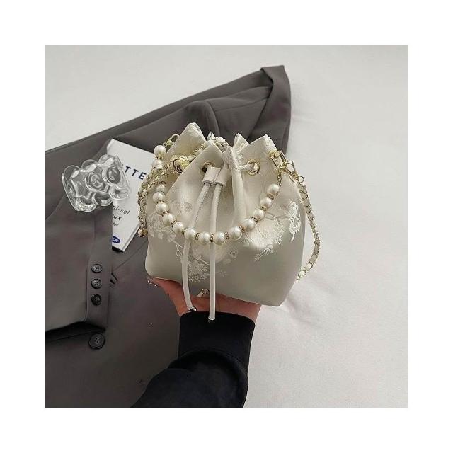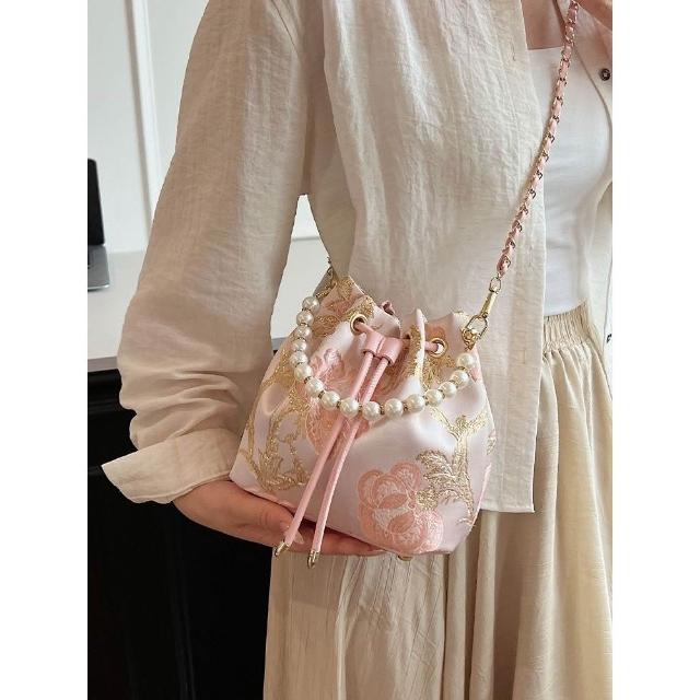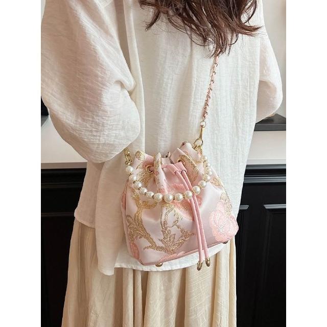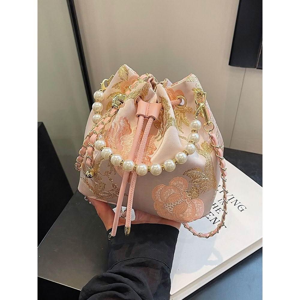 BG流行時尚手提珍珠鏈條包包2026刺繡高級感網紅束口外出時尚百搭夏天小挎包