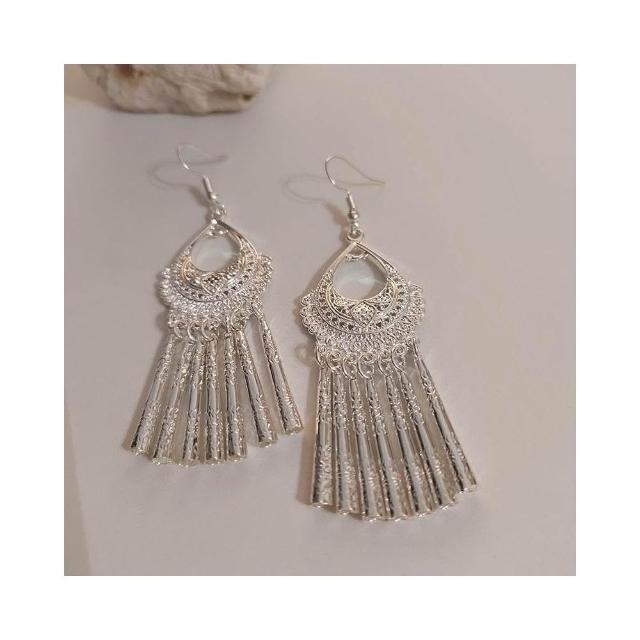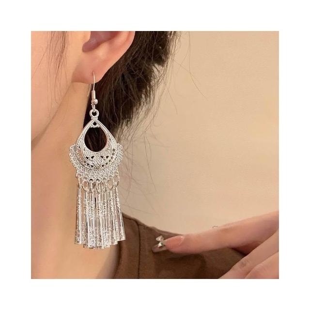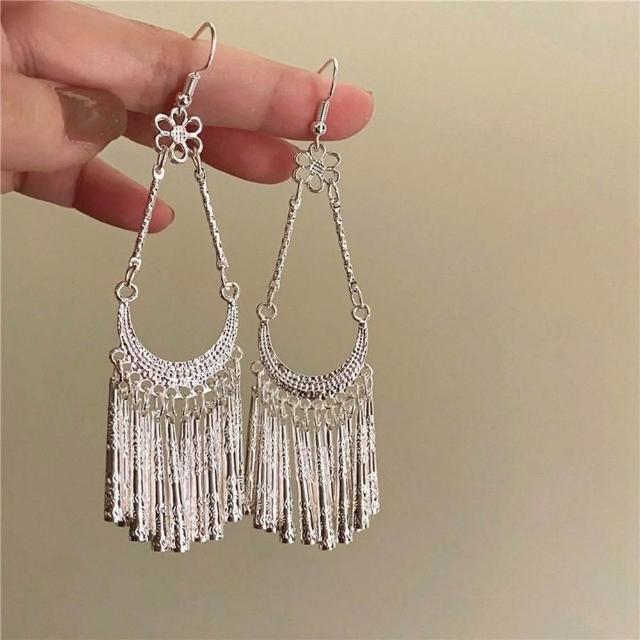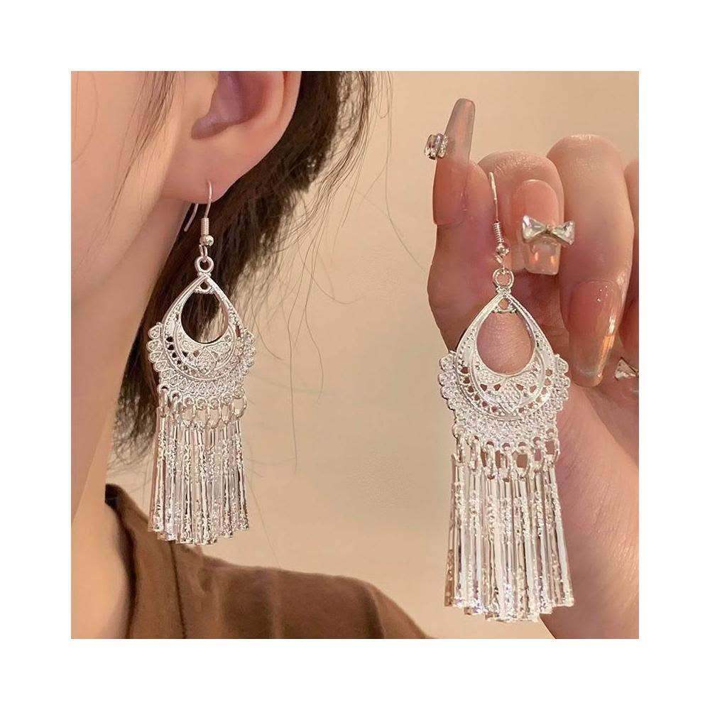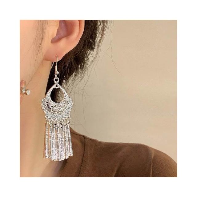 BG流行時尚新中式復古苗銀流蘇耳環女異域民族風耳飾高級感古風耳鉤耳墜