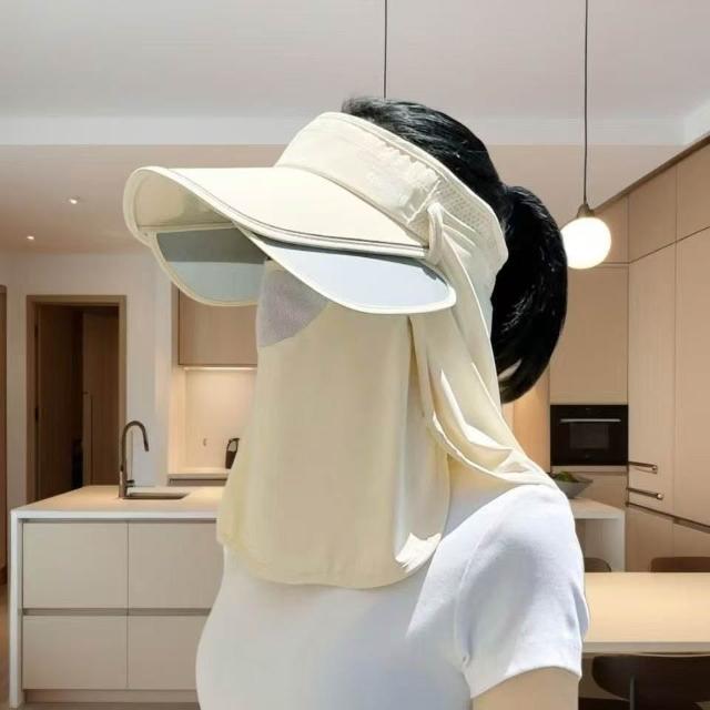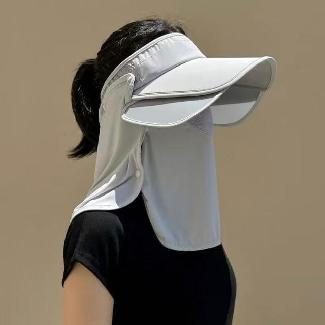 BG流行時尚防曬冰絲帽子遮陽帽夏季紫外線遮臉面罩空頂戶外騎車護頸太陽帽
