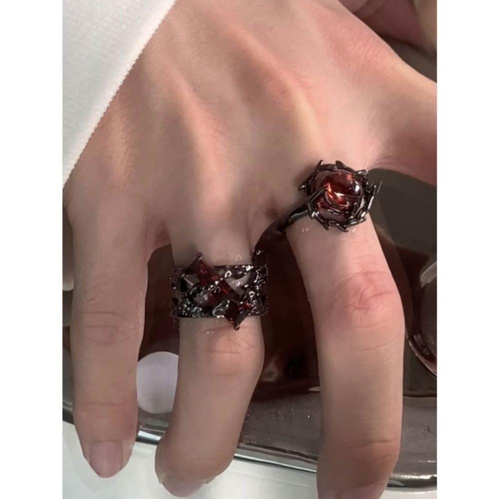 Felicity戒指暗夜守護黑色幾何戒指女夏ins小衆設計感食指戒個性朋克指環飾品