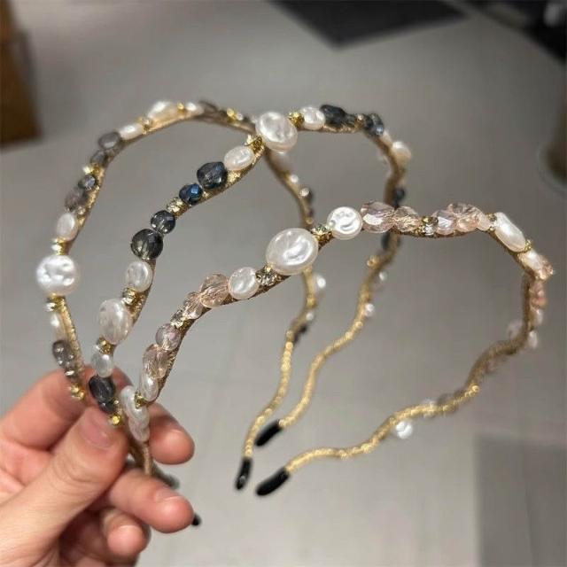 Felicity髮箍仙女水晶珍珠水鑽韓版髮箍女頭箍髮飾外出壓髮氣質簡約髮卡