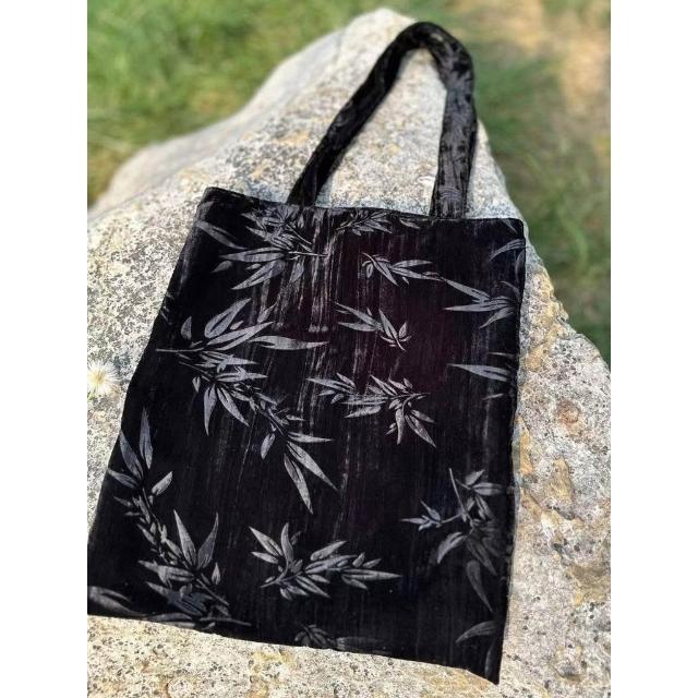BG新中式包黑色竹子復古單肩包手提包提花文藝絲絨包古風包
