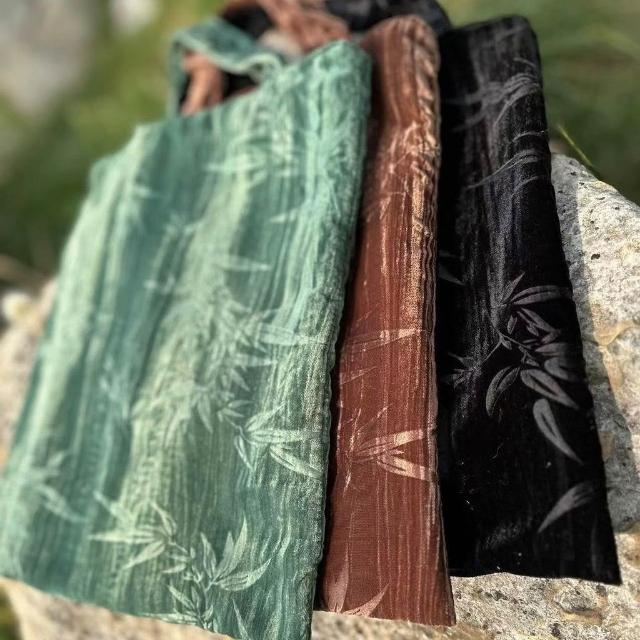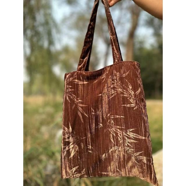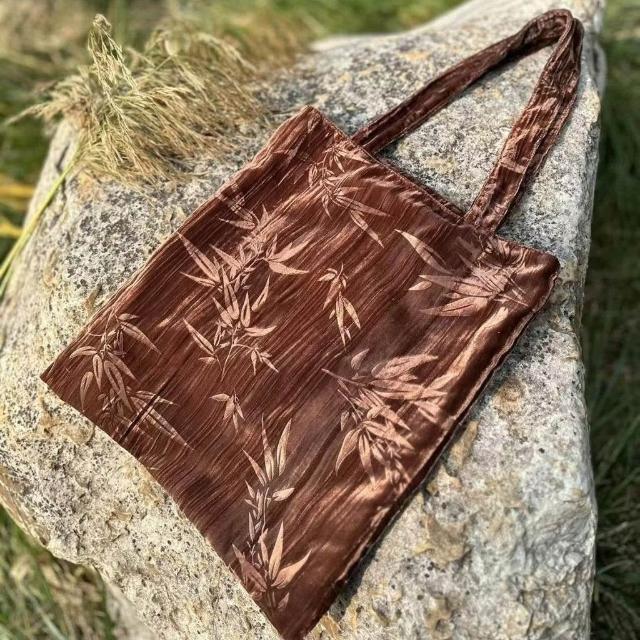 Felicity復古包包黑色竹子單肩包手提包提花文藝絲絨包古風包
