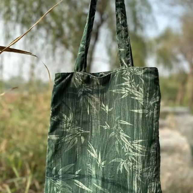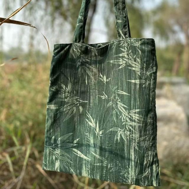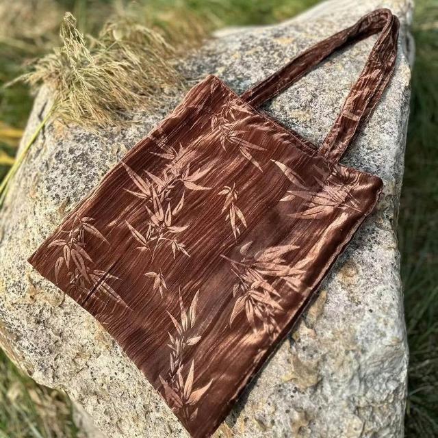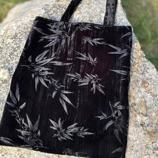 Felicity復古包包黑色竹子單肩包手提包提花文藝絲絨包古風包