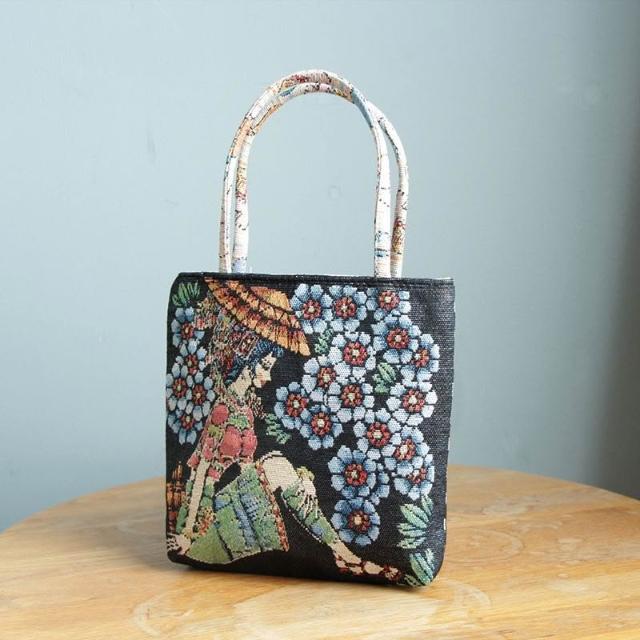 BG民族風便攜式新款金絲時尚帆布包手提包休閒刺繡手機包拎包