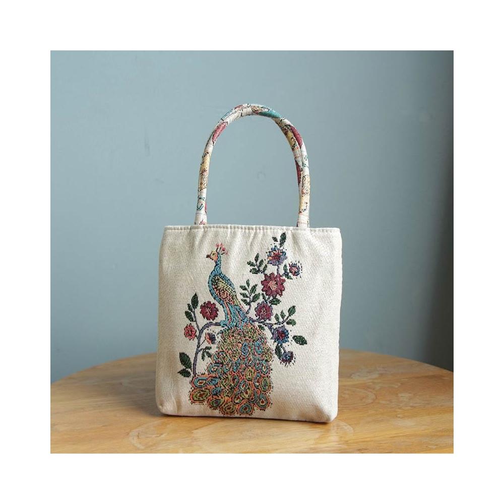 Felicity民族風包包便攜式新款金絲時尚帆布包手提包休閒刺繡手機包拎包