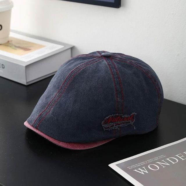 Felicity棒球帽水洗牛仔布帽子深藍色寬帽檐鴨舌帽深頂大頭貝雷帽男女士帽子