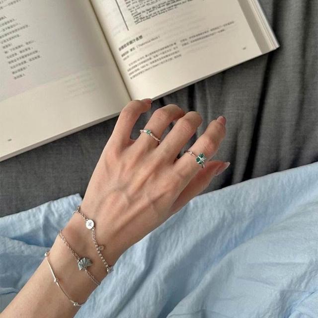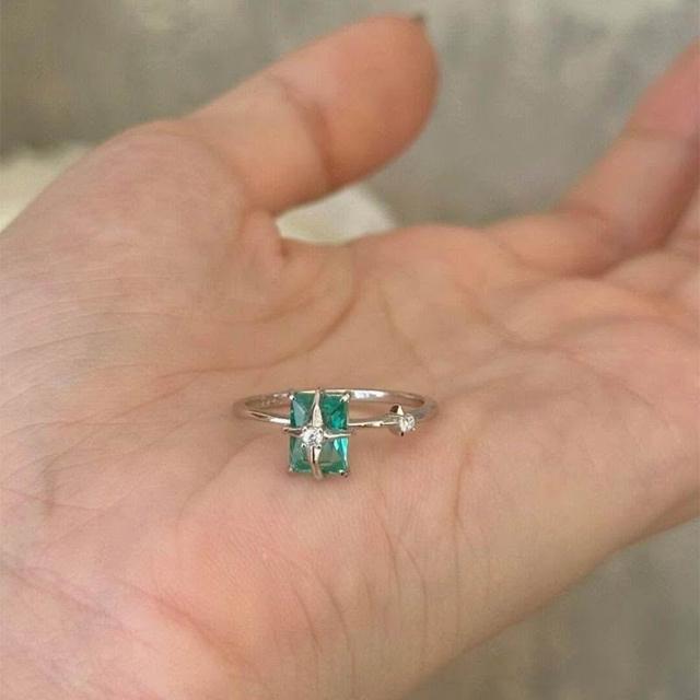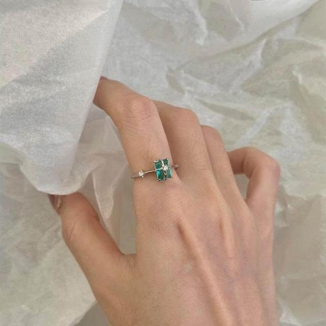 Felicity戒指2026新款湖指環藍色方糖戒指ins風微鑲冰透食指戒尾戒